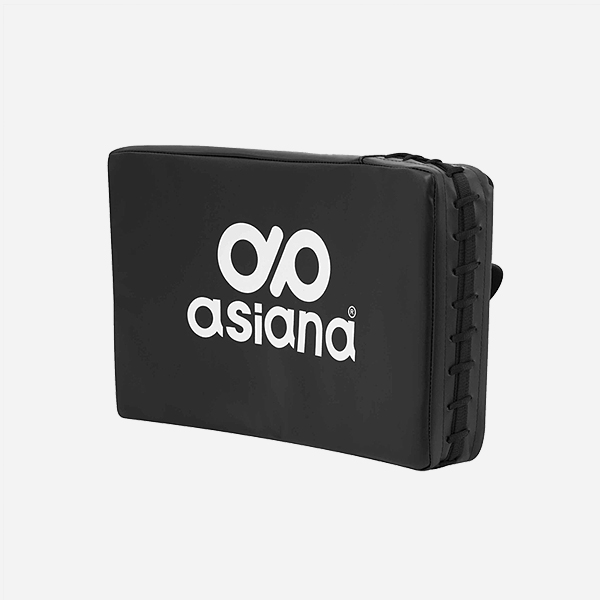 Almaodilla de golpeo tipo escudo curveado para pateo y golpeo con tres puntos de sujeción, fabricado en vinil reforzado con costuras y relleno de EVA.
