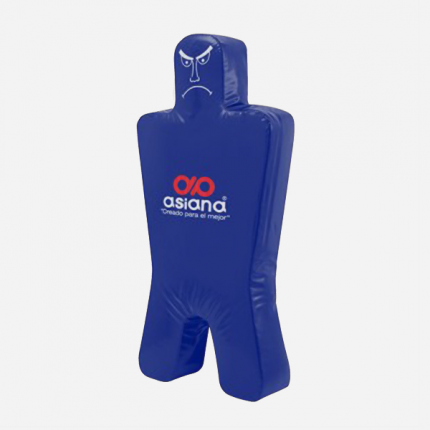 Almoadilla de golpeo tipo escudo con forma de persona para pateo y golpeo con tres puntos de sujeción, fabricado en vinil y correas de sujeción reforzadas.