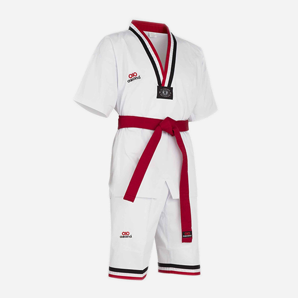 Uniforme Básico de calidad más corto de las mangas y de las piernas, ideal para la práctica en lugares calurosos, fresco y cómodo, uniforme reconocido por la FMTKD, incluye cinta blanca.