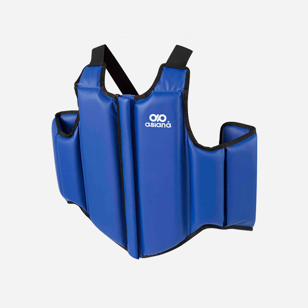 Peto para Karate, Sanda y Kick Boxing, tipo chaleco con cierre frontal, fabricado en vinil y relleno en EVA.