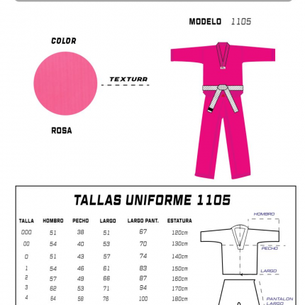 | Descripción | DOBOK TUSAH CLASICO DE COLORES – ROSA $569.00 DOBOK TUSAH ROSA (WT) 1105 Uniforme para Taekwondo. De alta competición, elaborado de la más alta calidad. Tela con control de humedad y gran comodidad al practicar. COMPOSICIÓN: 80% POLIÉS |