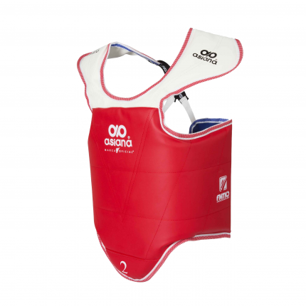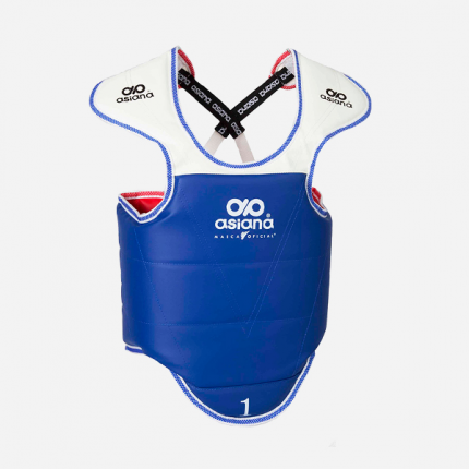 Peto Oficial de competencia y entrenamiento marca oficial de la Federación Mexicana de Taekwondo, diseño de doble vista y correas ajustables.