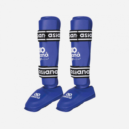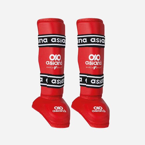 Espinillera de competencia y entrenamiento marca oficial de la Federación Mexicana de Taekwondo, empeinera desprendible, con correas de velcro ajustable.